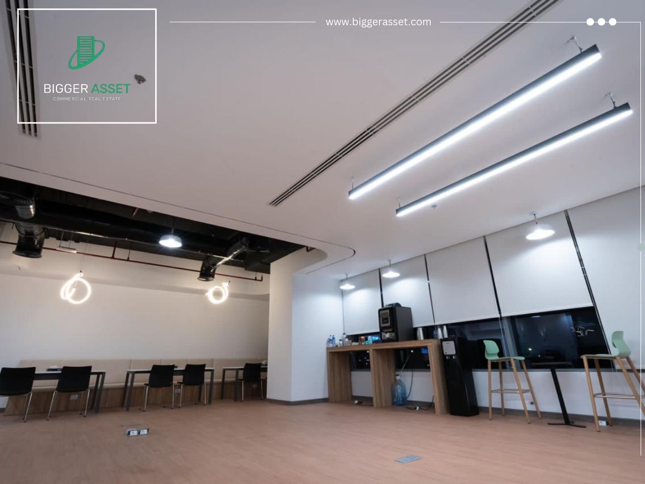 The office comes with ready flooring, smooth wall finishing, and modern lighting units. Moreover, the electrical system is installed, allowing immediate use. The open layout gives flexibility, so the space works for administrative teams, design studios, consulting companies, or small agencies.