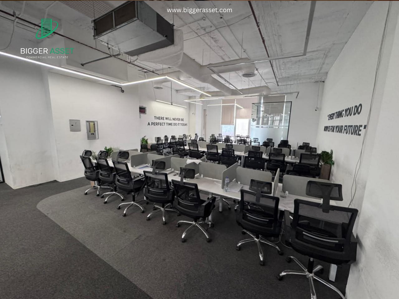The office comes with ready flooring, smooth wall finishing, and modern lighting units. Moreover, the electrical system is installed, allowing immediate use. The open layout gives flexibility, so the space works for administrative teams, design studios, consulting companies, or small agencies.